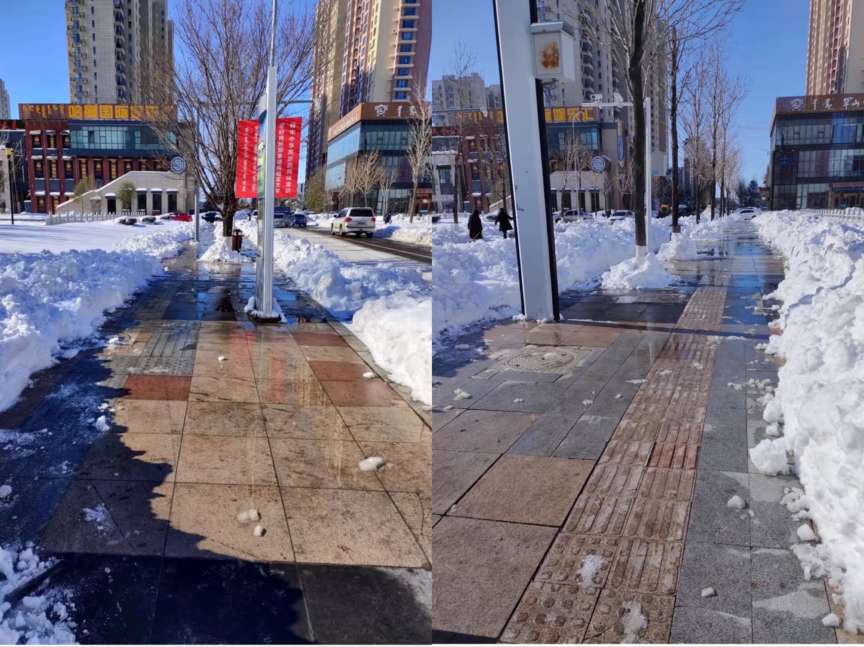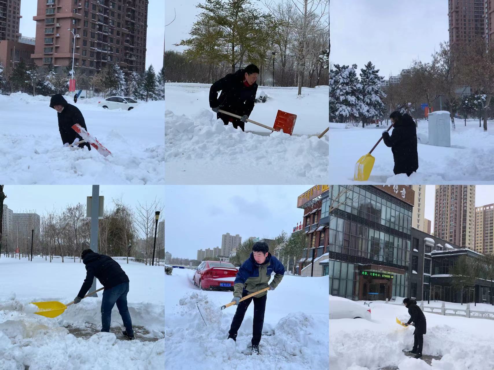 不畏风雪,“浴”雪奋战。面对寒冷天气、厚厚的积雪,领导干部身先士卒,以上率下,机关干部不畏严寒,冲锋在前、紧密配合,齐心协力,清除道路积雪,经过20余小时连续奋战,开辟出一条条温情畅通之路,方便了市民出行。