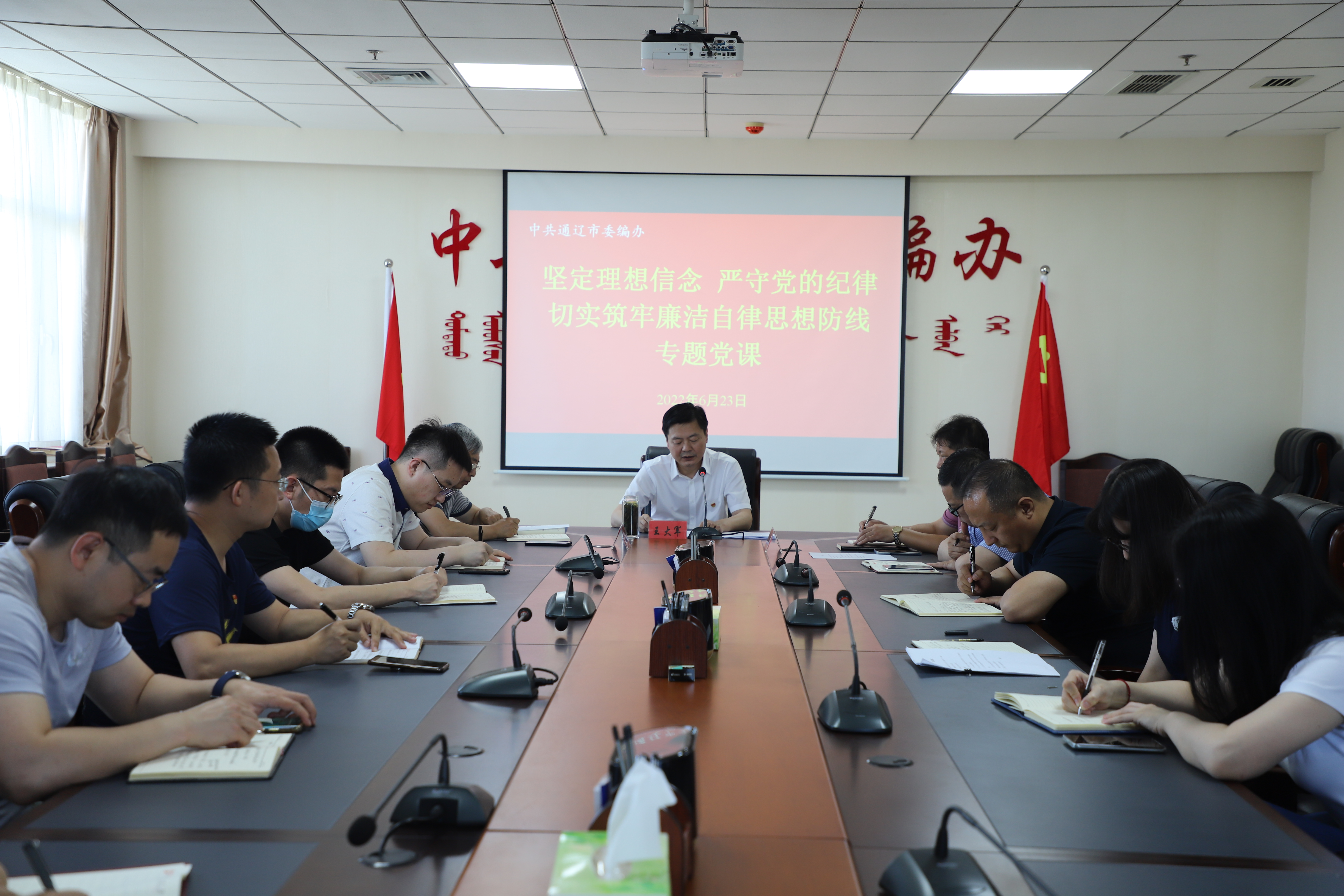 为深入贯彻落实市委、市纪委监委关于加强党风廉政建设相关要求,6月23日下午,通辽市委编办主任王大军作了题为《坚定理想信念 严守党的纪律 切实筑牢廉洁自律思想防线》的廉政专题党课,市委编办全体人员参加学习。
