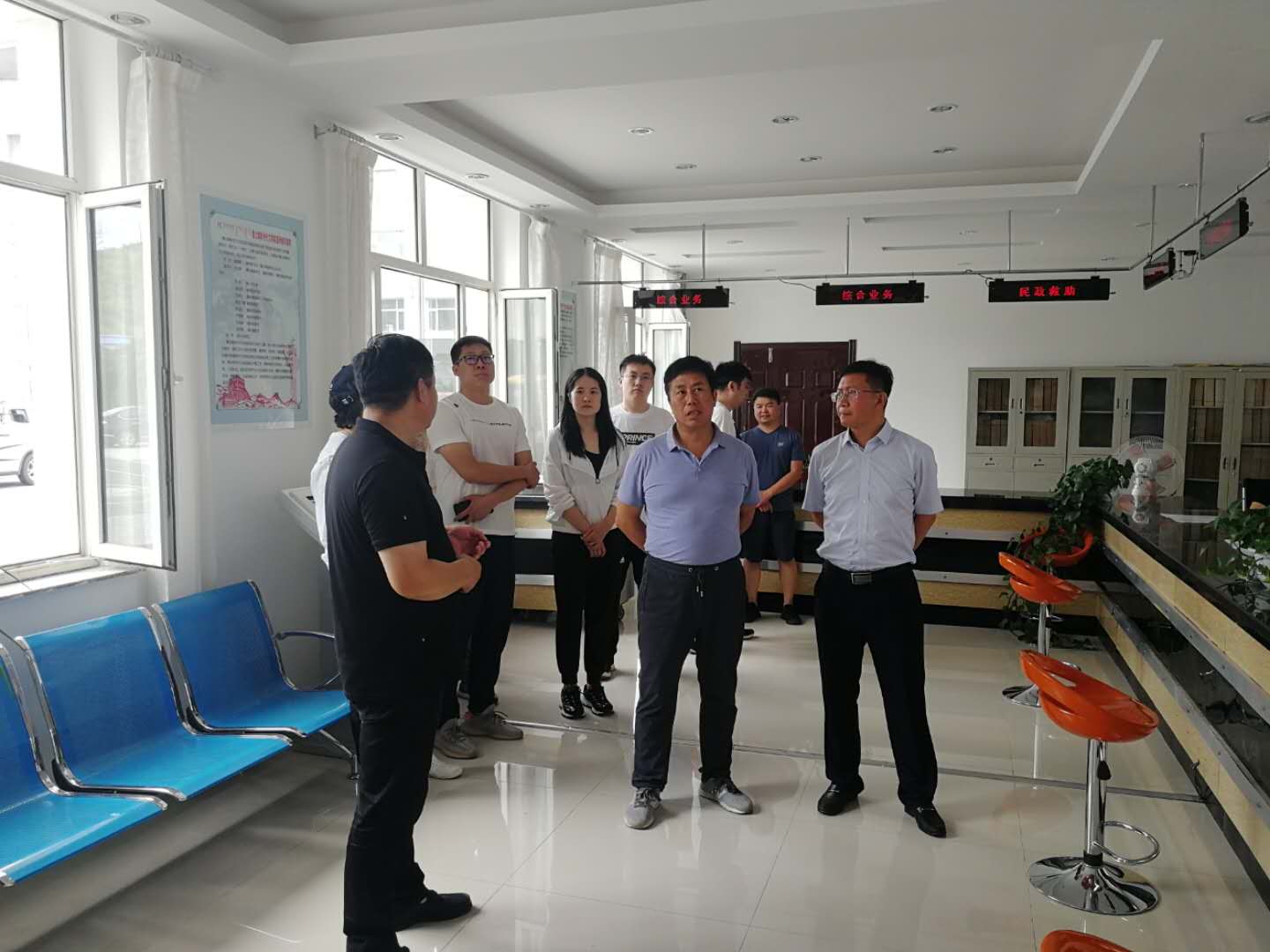 调研组先后来到鲁北镇、巨日合镇,通过听取介绍、查阅档案、现场询问等形式,详细了解“六办、两中心、一局”的设立挂牌、人员配备、职能职责及机构运行等情况。对两个镇综合行政执法工作规范化建设给予充分肯定,对党群服务中心结合工作实际,完善窗口设置,强化便民审批、退役军人、新时代文明实践工作等举措,给予高度评价。同时,要求在细化办事指南和流程,强化服务能力和水平等方面继续努力。